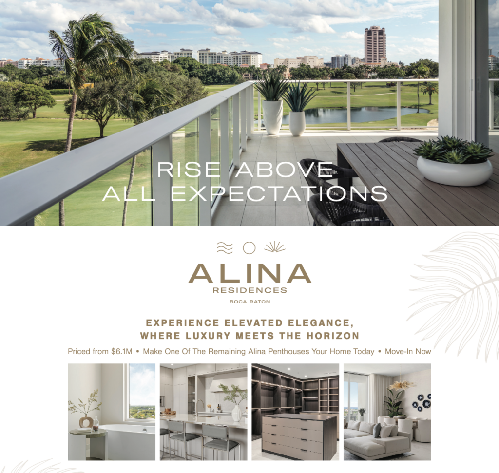 ALINA’s residences celebrate seamless indoor-outdoor living with select units showcasing panoramic views of Boca Raton Resort & Club, downtown Boca Raton, and the Atlantic Ocean.